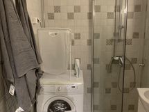 Suihku, Suihkuseinä, Pesukone, Pesukonevalmius, Peilikaappi, Allaskaappi, Laattalattia, Laattaseinä