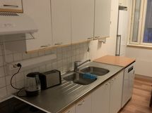 Paljon kaappitilaa, Laminaattitasot, Astianpesukone, Tilaa isolle ruokapöydälle, Suuri tiskipöytä, Keraaminen liesi, Liesituuletin, Jää-pakastinkaappi