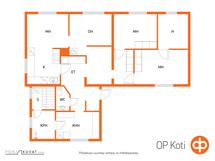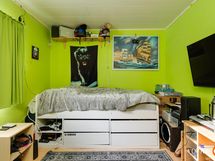 Keittiö: laminaatti/puolipaneeli/lasikuitutapetti. Olohuone: laminaatti/tapetti. Makuuhuone 1: muovimatto/tapetti. Makuuhuone 2: muovimatto/tapetti. Makuuhuone 3: muovimatto/tapetti. Kodinhoitohuone: laatta/lasikuitutapetti. Sauna: laatta/paneeli. Kylpyhuone: laatta. Wc: laatta/puolipaneeli/lasikuitutapetti.