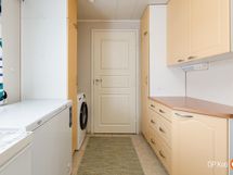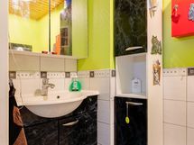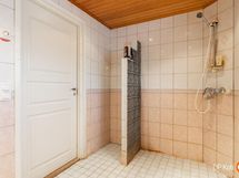 Sauna, sähkökiuas, kylpyhuone, erillinen wc, suihku, suihkuseinä, peilikaappi, kaapit, allaskaappi, pesukoneliitäntä, lattialämmitys, kiinteät valaisimet.