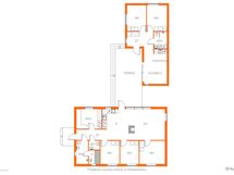 Alkuperäinen kerrosala on 114 m² ja laajennus 62 m².