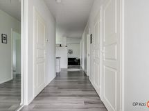 Keittiö: laminaatti, maali. Olohuone: laminaatti, maali. Makuuhuone 1: laminaatti, maali. Makuuhuone 2: laminaatti, maali. Makuuhuone 3: laminaatti, maali. Kodinhoitohuone: laatta, maali. Sauna: laatta, paneeli. Kylpyhuone: laatta, laatta. Eteinen: laminaatti, maali. Wc: laatta, maali. laajennuosalla: laminaatti, maali.