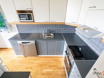 - Jääkaappipakastin, lattialiesi, induktioliesi, liesituuletin, mikroaaltouuni, astianpesukone, kaapistot, kiinteät valaisimet.