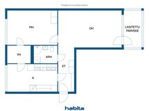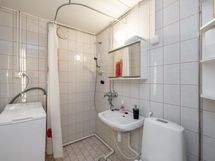 - Suihku, Pesukoneliitäntä, Tilaa pesukoneelle, Allas, WC-istuin, Peilikaappi