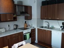 - Paljon kaappitilaa, Suuri tiskipöytä, Laminaattitasot, Teräskalusteet, Astianpesukone, Pesukoneliitos, Sähköliesi, Liesituuletin, Keraaminen liesi, Jääkaappi, Pakastin