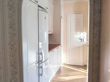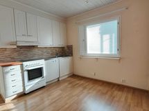 Liesi: keraaminen. Työtasot: laminaatti. Kylmäsäilytys: jääkaappi/pakastin. Varustus: liesituuletin, astianpesukone, kiinteät valaisimet.