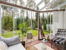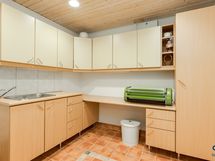 - Vaatehuone, kylmä ulkovarasto, kaapistot ja seinäkaapit. Lisätietoja säilytystiloista: Viinikellari.