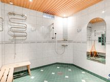 - Pesutilojen varusteet: Suihku, lattialämmitys, peili ja pyyhelämmitin. Pesutilojen kuvaus: Sekä ylä,- että keskikerrokseta löytyy omat kylpyhuone WC:t. Alakerrassa erillinen WC sekä kylpyhuone/sauna osasto. Erillisten WC:n lukumäärä: 3. Erillisen WC:n varusteet: WC-istuin, suihku, allaskaappi, bidee-suihku, lattiakaivo, peili, pesuallas, lattialämmitys ja suihkuseinä (Keskikerroksessa). Erillisen WC:n kuvaus: Sekä ylä,- että keskikerrokseta löytyy omat kylpyhuone WC:t.