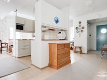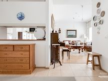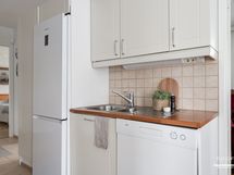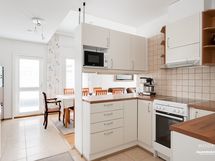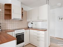 - Keittiön varusteet: Liesituuletin (IV-ohjaus samassa), astianpesukone, liesi ja jääkaappipakastin. Liesi: Keraaminen liesi. Työtason materiaali: Laminaatti.