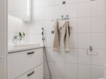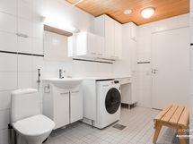 - Pesutilojen varusteet: Lattialämmitys, wc-istuin ja pesukoneliitäntä. Pesutilojen kuvaus: Kaikki kiinteästi asennetut kalusteet kuuluvat kauppaan (kaapistot, hanat, altaan yms.). Erillisten WC:n lukumäärä: 2. Erillisen WC:n kuvaus: WC-istuin kylpyhuoneessa ja erillinen WC. Kaikki kiinteästi asennetut kalusteet kuuluvat kauppaan (kaapistot, hanat, altaan yms.).