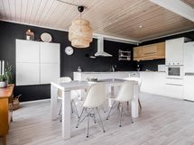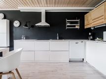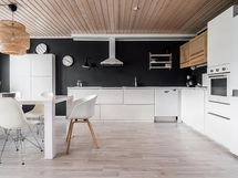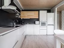 - Jääkaappi/pakastin, kiertoilmauuni, keraaminen liesi, kaapistot, astianpesukone, astianpesukoneliitäntä, liesituuletin