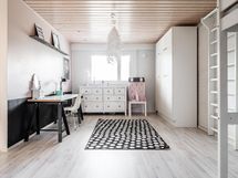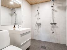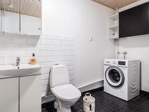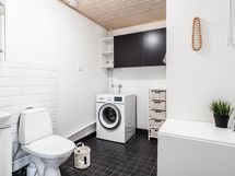 - Kylpyhuone, suihku, kylpyhuonekaapisto, pesukoneliitäntä, kiinteät valaisimet, sähkösauna, erillinen wc joka toimii myös kodihoitohuoneena