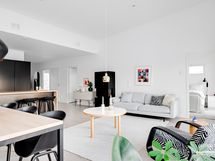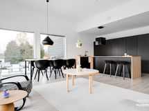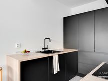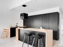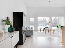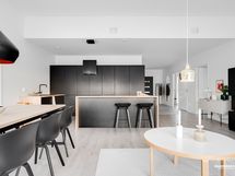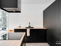 - Keittiön varusteet: Erillinen pakastin (integroitu), jääkaappi (integroitu), erillisuuni (integroitu), astianpesukone (integroitu), liesituuletin (aktiivihiilisuodatin), liesi ja aamiaskaappi. Liesi: Induktioliesi. Työtason materiaali: Laminaatti. Omega-keittiöt.