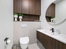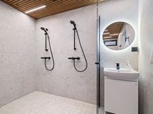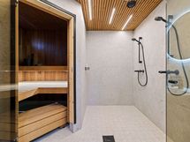 Suihku, Vesikiertoinen lattialämmitys, Kaapisto, Allas, Suihkuseinä, WC-istuin, Peili