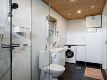 Suihku, Pesukoneliitäntä, Mukavuuslattialämmitys, Tilaa pesukoneelle, Käsisuihku, Kaapisto, Allas, Suihkuseinä, WC-istuin, Peili