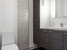 - Pesutilojen varusteet: Suihku ja lattialämmitys. Erillisten WC:n lukumäärä: 1. Erillisen WC:n varusteet: WC-istuin, peili, pesuallas ja allaskaappi.