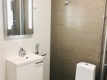 Suihkuseinä, Suihku, Pesukonevalmius, Peilikaappi, Laattalattia, Laattaseinä, Lattialämmitys
