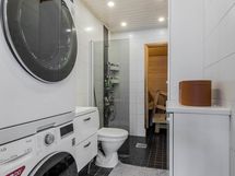 - Pesutilojen varusteet: WC-istuin, suihku, suihkuseinä, pesukoneliitäntä, peili, bidee-suihku, pesuallas ja lattialämmitys. Pesutilojen kuvaus: Remontoitu 2013. Erillisten WC:n lukumäärä: 1. Erillisen WC:n varusteet: WC-istuin, peilikaappi, pesuallas, allaskaappi ja bidee-suihku. Erillisen WC:n kuvaus: Remontoitu 2020.