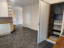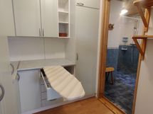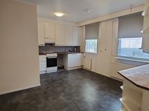 - Keittiön varusteet: Liesi, liesituuletin ja kylmiö. Liesi: Keraaminen liesi. Työtason materiaali: Laminaatti.