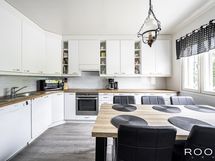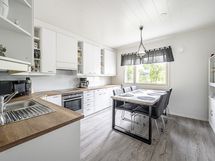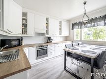 - Varustus: Jääkaappipakastin, keraaminen liesi, liesituuletin, uuni, astianpesukone, kaapistot.