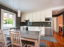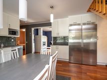 - Keittiön varusteet: Jääkaappi, erillinen pakastin, liesi, astianpesukone ja liesituuletin. Liesi: Induktioliesi. Työtason materiaali: Laminaatti. Täyskorkeat jääkaappi ja pakastin (Bosch 2014), astianpesukone (Bosch), induktioliesi (Bosch), liesituuletin (Bosch).