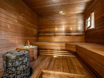- Kiuas: Sähkökiuas. Ikkunallinen sauna on uusittu 2016. Lattialämmitys, sähkökiuas, led-valaistus,