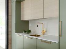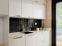 - Keittiön varusteet: Jääkaappi, erillinen pakastin, liesi, liesituuletin, astianpesukone, erillisuuni, keittiösaareke ja mikroaaltouuni. Liesi: Induktioliesi. Työtason materiaali: Dekton - keraaminen kivitaso. Allastaso ja välitila Dekton. Tapwell hana ja allas. Integroidut kodinkoneet.