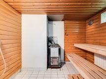 Sauna, puukiuas, kylpyhuone, erillinen wc, suihku, pesukoneliitäntä. Kylpyhuoneessa alkuperäiset valurautaiset lattiakaivot, jotka ikääntyneet.