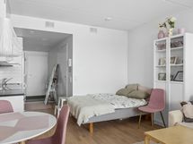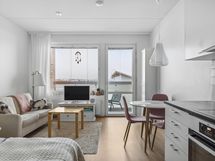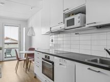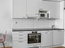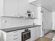 - Jääkaappipakastin, keraaminen liesi, liesikupu, astianpesukone, kaapistot, kiinteät valaisimet.