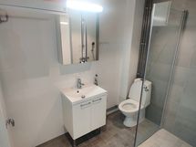 - Pesutilojen varusteet: Lattialämmitys, allaskaappi, pesuallas, peilikaappi, bidee-suihku, pesukoneliitäntä, suihkuseinä, wc-istuin ja suihku.