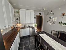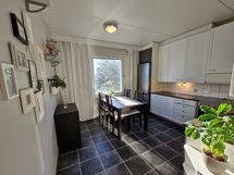 - Tilaa isolle ruokapöydälle, Paljon kaappitilaa, Paljon työskentelytilaa, Puutasot, Astianpesukone, Sähköliesi, Keraaminen liesi, Liesituuletin, Jää-pakastinkaappi
