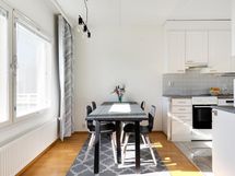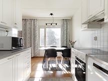 - Jääkaappipakastin, keraaminen liesi, liesituuletin, astianpesukone, kaapistot, kiinteät valaisimet.