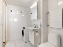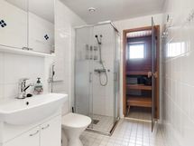 - Sauna, sähkökiuas, kylpyhuone, erillinen wc, suihkukaappi, peilikaappi, allaskaappi, pesukoneliitäntä, lattialämmitys kph sähköinen (osakas maksaa sähkön), kiinteät valaisimet.