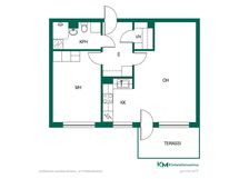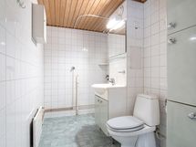 - Kylpyhuone, suihku, peilikaappi, pesukoneliitäntä, kylpyhuonekaapisto, kiinteät valaisimet