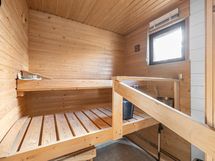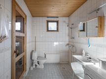 Sähkösauna, suihku, pesukoneliitäntä, peilit, kiinteät valaisimet. Erillinen wc allas, peili.