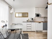 - Pesukoneliitäntä, wc-istuin, sauna, peilikaappi, allaskaappi, bibee, lattialämmitys