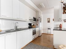 - Jääkaappi/pakastin, erillisuuni- ja taso, astianpesukone, kaapistot, liesituuletin hormiin