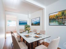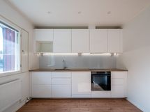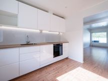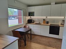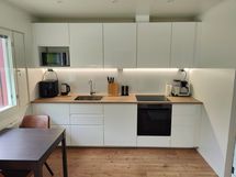 - Keittiön varusteet: Jääkaappi, erillinen pakastin, erillisuuni, liesi, liesituuletin ja astianpesukone (integroitu). Liesi: Induktioliesi. Työtason materiaali: Laminaatti. - Keittiön kaapistoilla takuu.