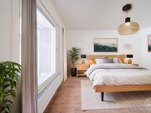 - - Läpitalon asunto, jonka läntisen puoleisista ikkunoista näkymät aidatulle takapihalle ja idän puoleisesta ikkunasta näkymät taloyhtiön piha-alueelle