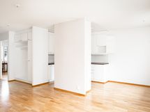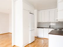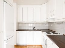 - Keittiön varusteet: Jääkaappipakastin, liesi ja astianpesukone. Liesi: Valurautaliesi. Työtason materiaali: Laminaatti.