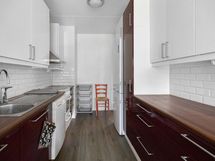 - Kaapistot, jääkaappi/pakastin, astianpesukone, astianpesukoneliitäntä, keraaminen liesi, uuni, liesituuletin