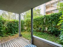 - Suojaisa terassipiha lounaaseen, osittain katoksen alla.
