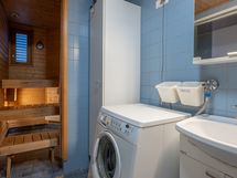 - Pesutilojen varusteet: WC-istuin, suihku, peilikaappi, pesuallas, allaskaappi ja bidee-suihku.