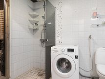 - Varusteet: Suihkuseinä, Pesukoneliitäntä, WC, Suihku