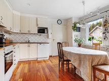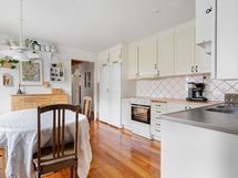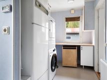 Varusteet: Jääkaappi, Pakastin, Astianpesukone. Työtaso: Laminaattitaso. Liesi: Keraaminen liesi, Liesituuletin hormilla