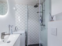 - Pesutilojen kuvaus: Lattialämmitys, sadesuihku, suihkuseinät, valopeili, seinä wc, allaskaappi, bidee, pesukoneliitäntä, pyyhekuivain.