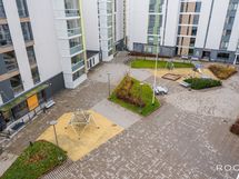 Lastenvaunuvarasto ja ulkoiluvälinevarastotilat sijaitsevat pihakannen