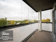 Toisen kerroksen kaksio, jossa lasitettu parveke.