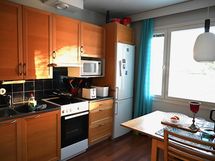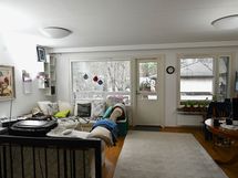 - Parveke ilta-aurinkoon, Olohuone ilta-aurinkoon, ikkunat koilinen-luode läpitalon huoneisto