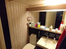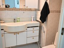 - Suihku, Pesukonevalmius, Peilikaappi, Allaskaappi, Rättipatteri, Laattalattia, Laattaseinä, Erillinen WC x 2